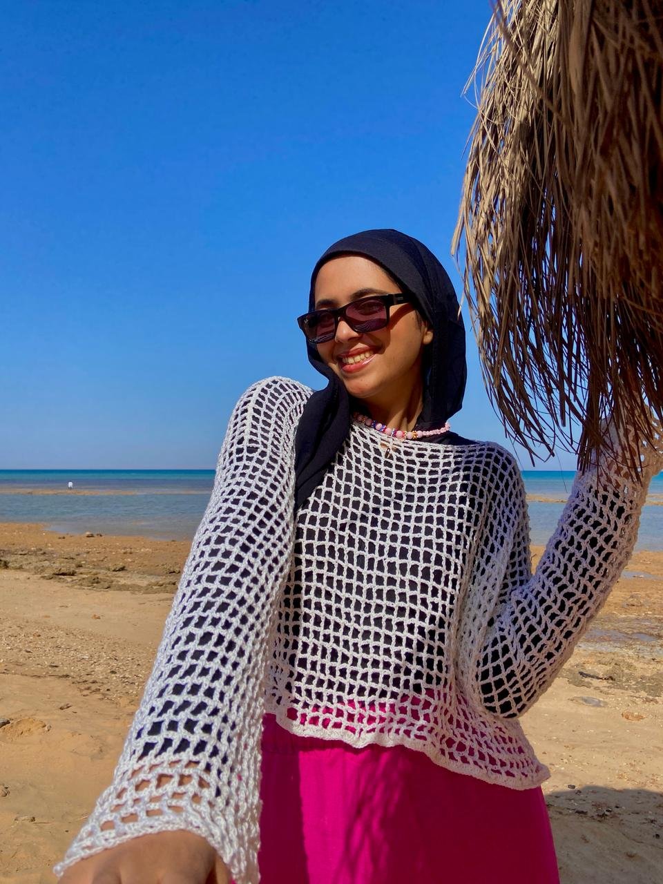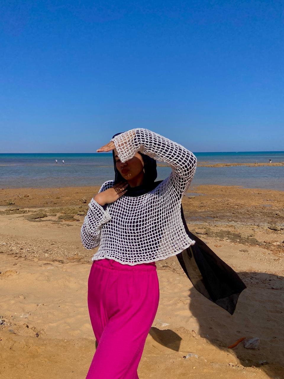 “أضيفي لمسة انتعاش لإطلالات الصيفية مع هذه البلوزة الكروشيه المصنوعة يدويًا. خفيفة، أنيقة، ومثالية للتنسيق فوق ملابس البحر — قطعة أساسية لكل رحلة شاطئية!”